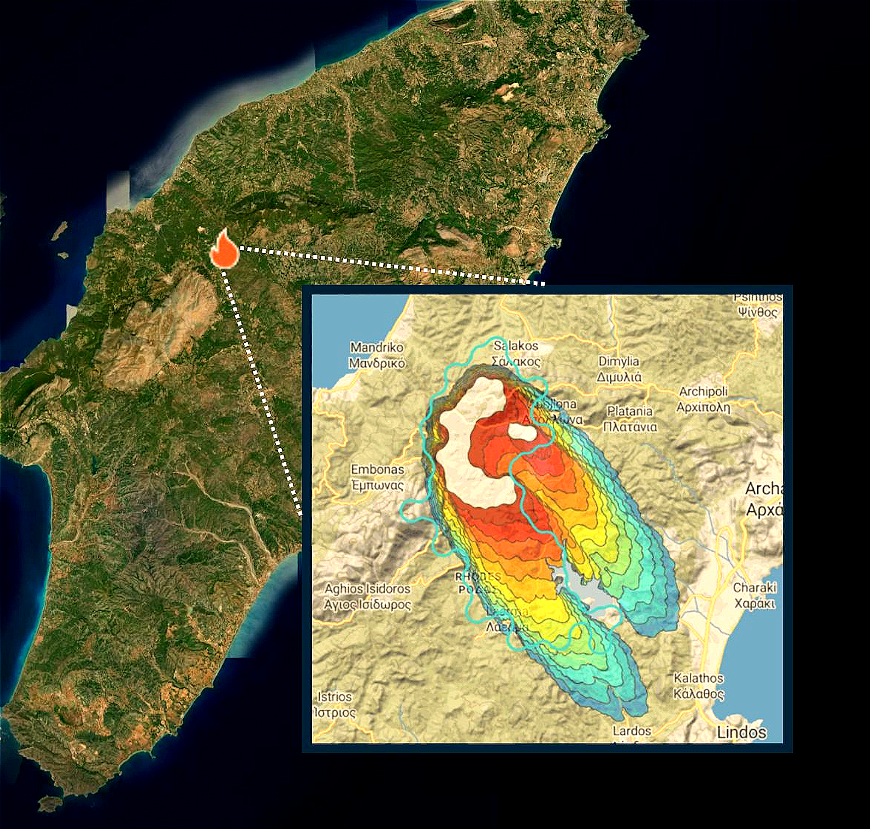 Feuer auf Rhodos, Verlauf und Prognose Fotos OroraTech